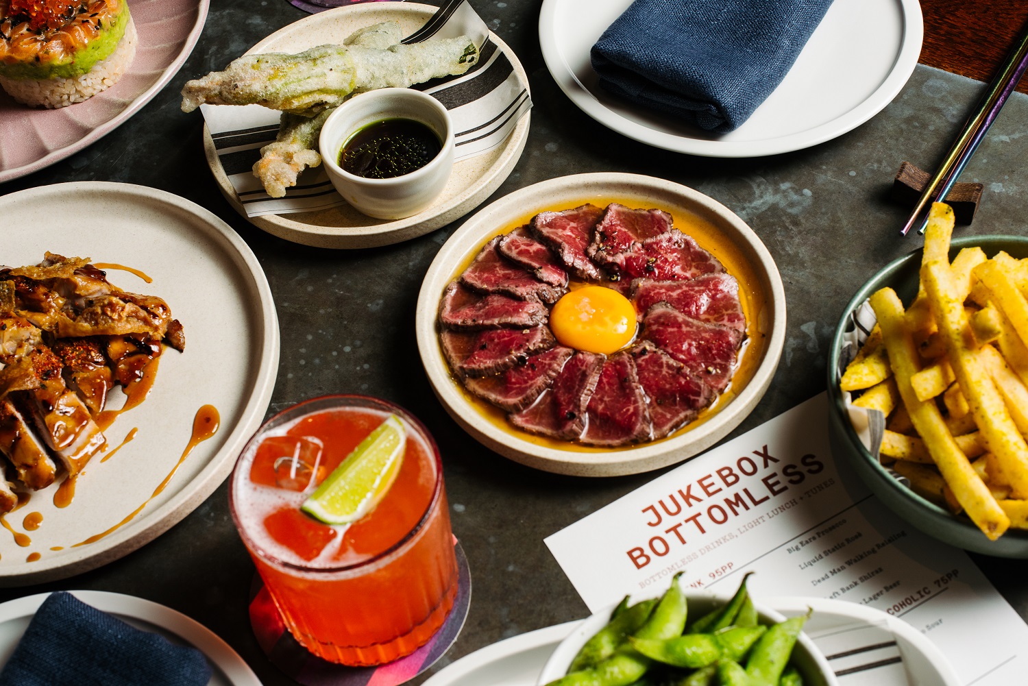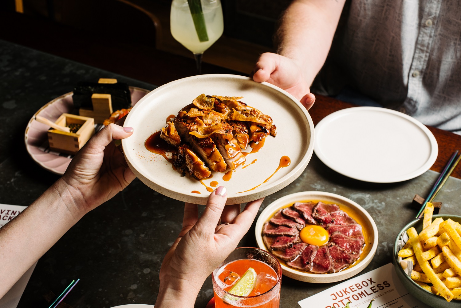 Say goodbye to denied song requests, sip to the rhythm of the tunes you select. It's a flavour-forward, Japanese-inspired lunch, house sips and tunes that you get to be the jukebox to. Spinning every Sat + Sun.